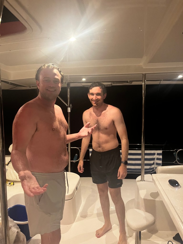 Dubbed “#1 Crew” , our son Ryan and his friend Nate Witherell joined us the day after we closed. They flew into St Thomas and we put them right to work hauling packages and grabbing the really heavy stuff to put on board.