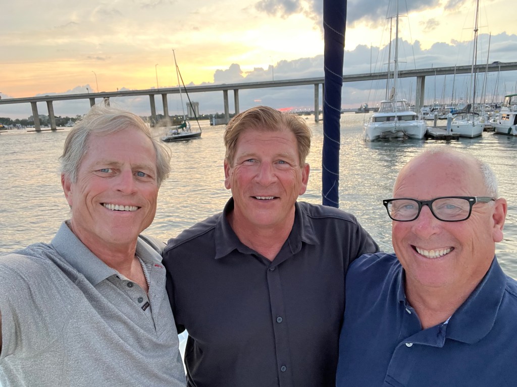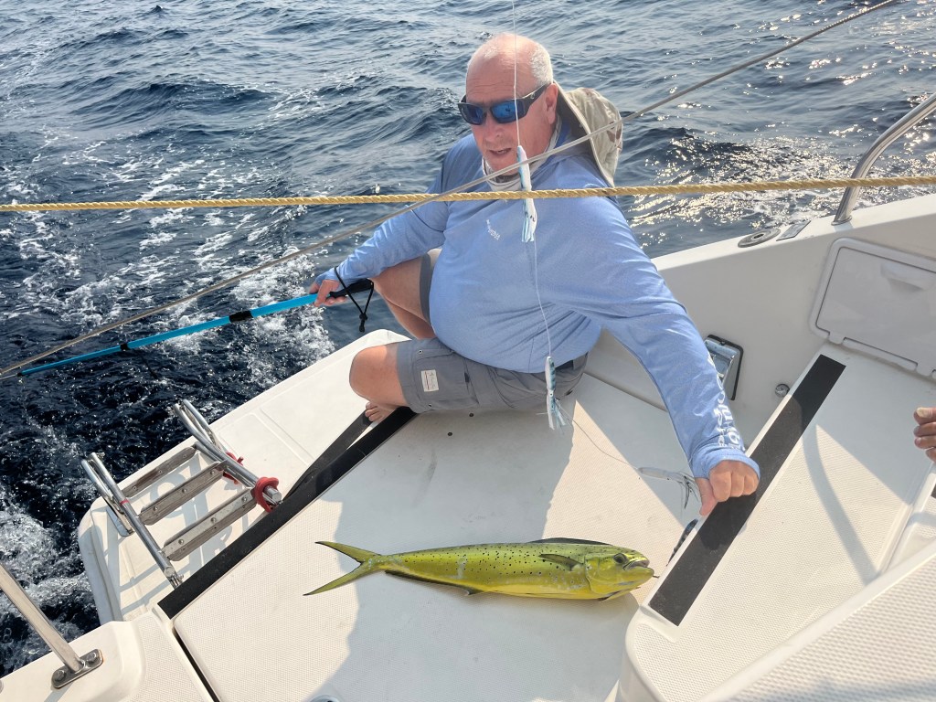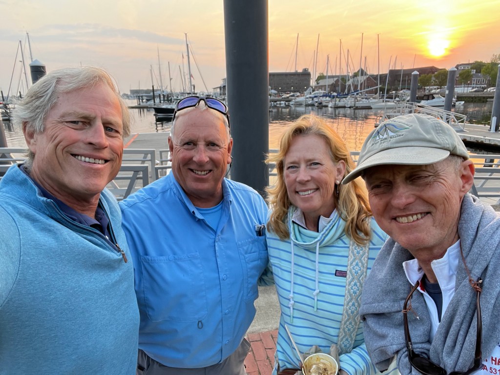 We got word it was a good weather window and we were well provisioned so we headed for Newport RI! This would be our longest passage but got everyone where they needed to be (home!) in shortest amount of time. We headed out of Beaufort, rounded Cape Lookout and cleared Cape Hatteras (we were expecting the worst based on its reputation for being treacherous, but it was pretty calm). We entered the Gulf Stream and Day 3 was the worst – winds out of the Northeast as we tried to drive north – poor Carried away she took it well! And then finally just south of Long Island ….after days and days…Billy finally caught a fish!! A beautiful Mahi Mahi which the boys filleted and grilled for a yummy dinner! We sailed into Newport tied up at the new racing Marina. Funny how the familiar waters of Newport felt like home! We enjoyed dinner with the crew at our favorite spot “Scales”. They then headed back to their families. It was a long treck but we were all glad we’d done it.