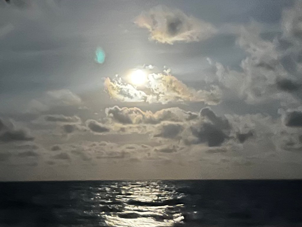 We then spent a couple of days at the San Juan Bay Marina getting provisioned and ready for our first overnight (3 day) passage. We left San Juan on May 3rd which would have been my moms 90th birthday and I was hopeful that she was keeping an eye on us and keeping us safe! The journey was going to be 450 miles which felt daunting. We took regular shifts and Pirate Mike took some really long ones so we all got some good rest. The weather was mild and while we saw some storms in the distance we avoided them and had overall had a very good trip up to the Bahamas.