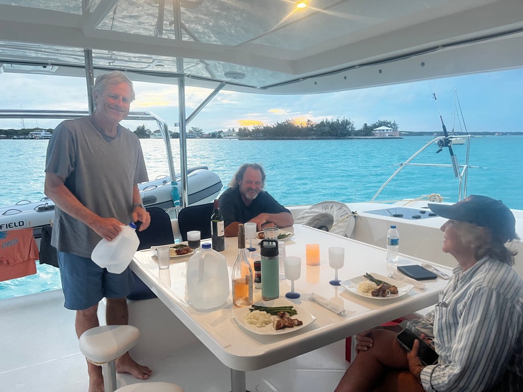 Once in the Bahamas we continued a pretty quick pace north as we had a long way to go! We stopped at Great Inagua, Acklin, Crooked and Long Islands. Too many stops and amazing experiences to capture in a quick update – but pictures below tell a little of it. Weather overall was good – winds were up and we did spend a “snow day” as Pirate Mike called it – in Georgetown Harbor where it was too windy and wet to leave the boat – a good day to rest. And Georgetown is where Pam disembarked (thank you Pambo!) and Pirate Mike helped us move up to Emerald Bay before he jumped off to head back to his own boat and home in Honduras. Thank you Mike – we learned so much – and had a blast!