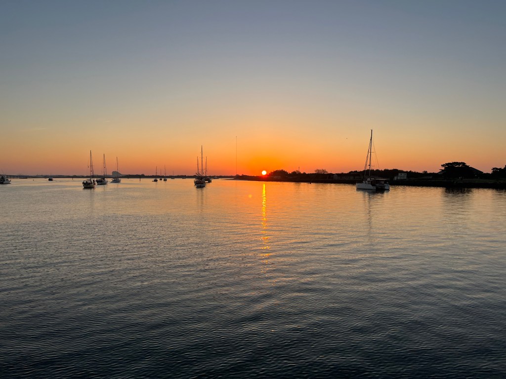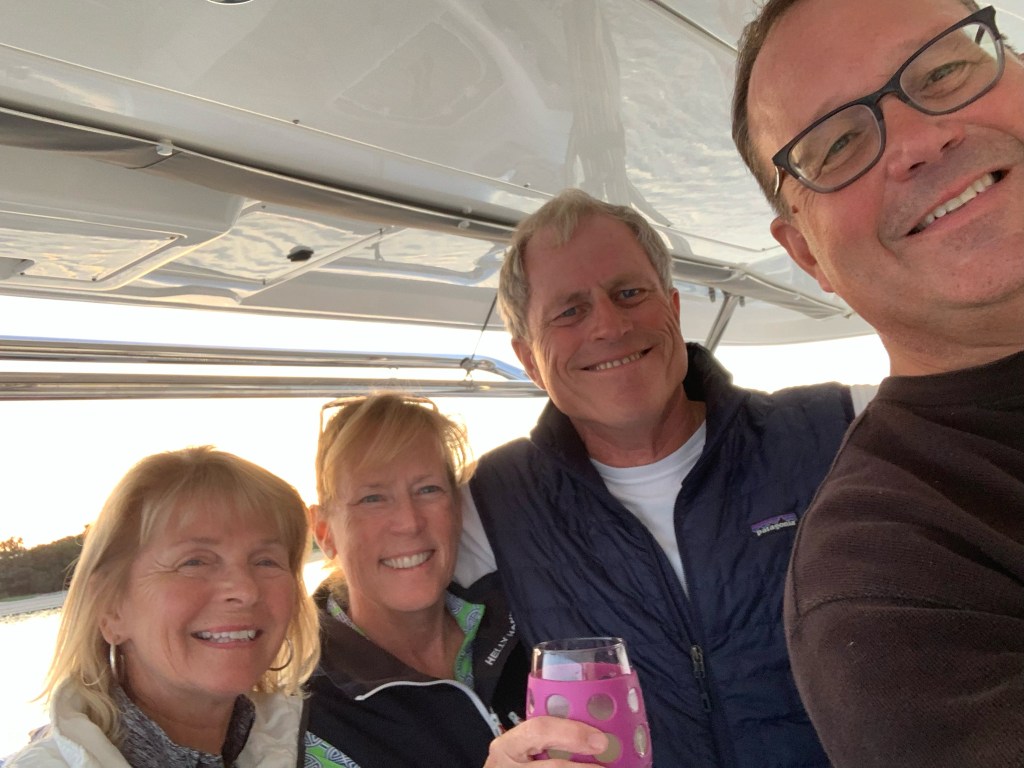 With our sights set on the Caribbean for winter 23/24, we headed off from Marblehead on Thursday September 21st (our 32nd anniversary ) with good friends (and great crew!) Scott & Kimberley Fillenworth. We left early on a beautiful fall day (little wind but lots of sun) and made it through the Cape Cod Canal by early afternoon, anchored by Bassett’s Island on the west side of Red Brook Harbor on a beautiful calm night and celebrated the beginning of our southern adventure and our wedding anniversary!