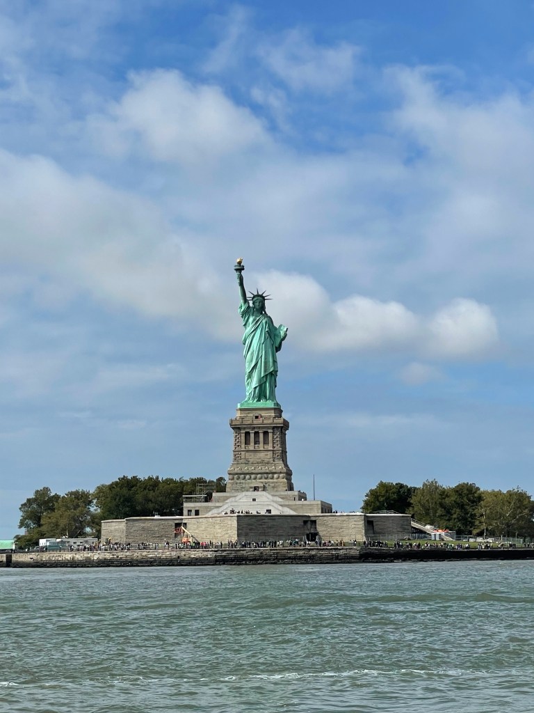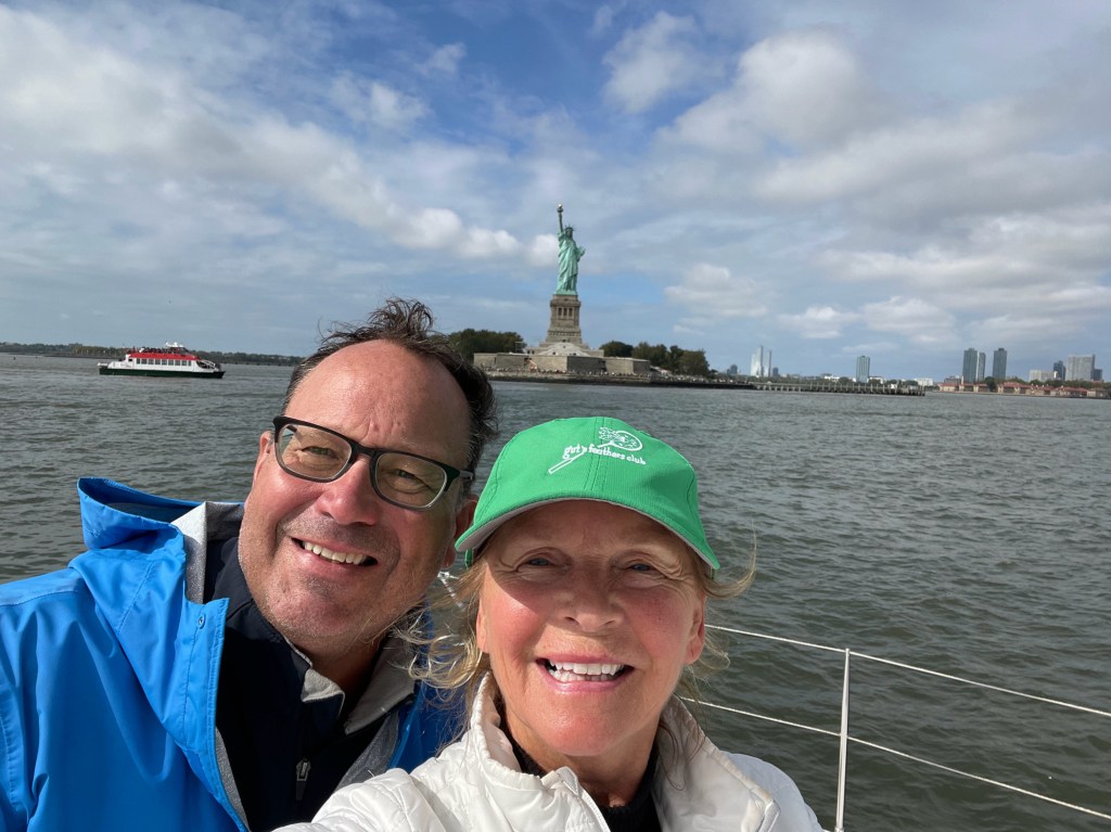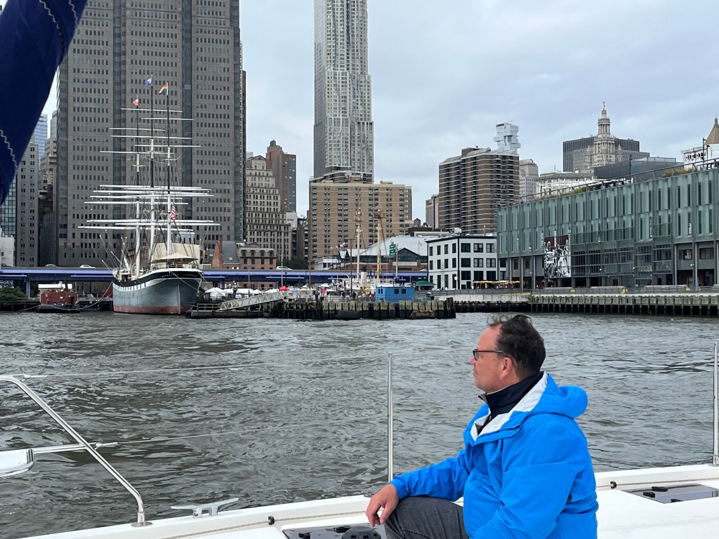 Finally the weather cleared enough to head for New York City. This has been a bucket list of mine for a long time – to sail down the East River and pass Lady Liberty – and it did not disappoint! It was an absolutely amazing day. We passed yachts racing as we passed down through Long Island Sound, we passed Laguardia, Rikers Island and Throgs Neck and eventually through Hells Gate which is known as a a treacherous area due to very heavy currents. We were fortunate to have overcast skies and light winds and we timed it to have the current with us the whole way through. We chose to slow down and sail slowly through to appreciate the majesty of the Big Apple – so glad we did (we kept one engine on for safety). Billy played Alicia Keys’ remix of Empire State of Mind as we passed through the East River. We were all a little speechless! It was exciting to see all the NY Ferries darting back and forth shuttling people from Manhattan to the boroughs. Passing Wall Street and finalizing arriving at the Statue of Liberty was simply amazing!