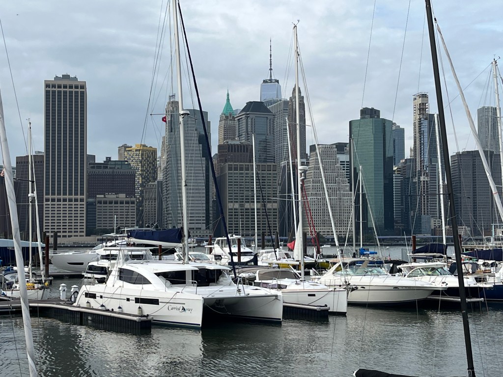 We took a slip at ONE-15 Brooklyn Marina and loved it! It was not inexpensive (nothing in NYC is!) but It was easy to get into – the breakwater protected us (mostly) from all the East River traffic and provided an amazing view of NYC – especially at night!