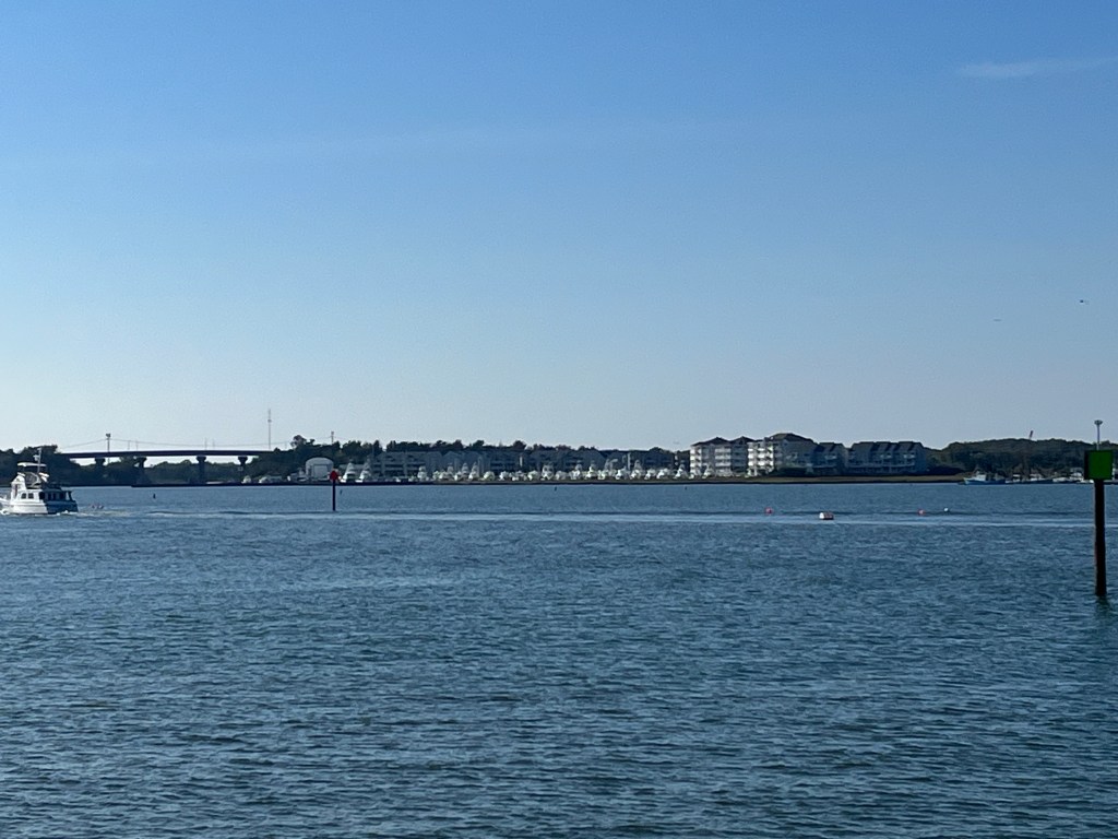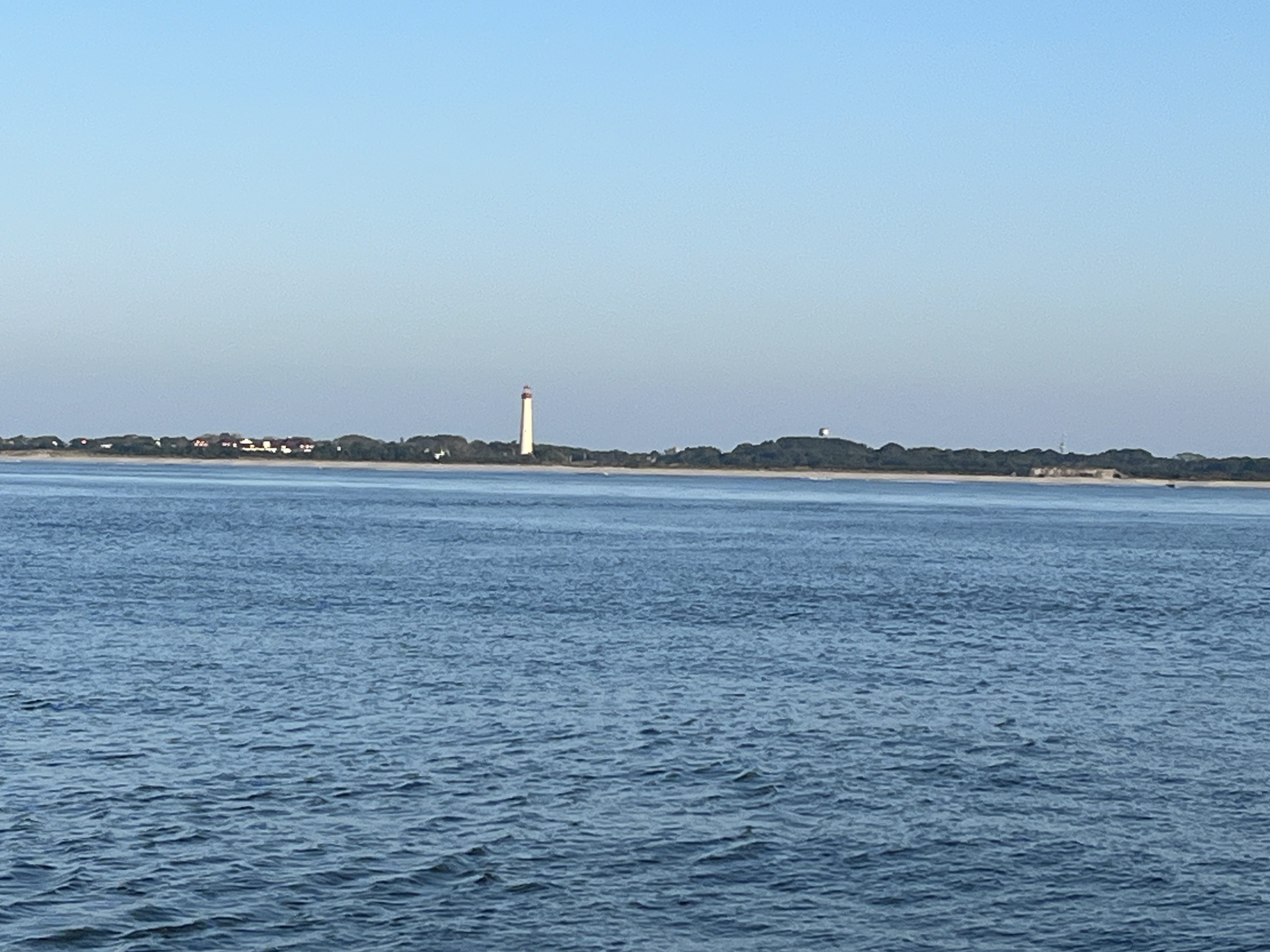 The next phase of our southern track was to get from NYC to Baltimore by Thursday Oct 5th so we could fly home for a wedding Saturday (Yahoo!). We were blessed with calm and clear days – we put in two 65 nm days first to Barnegat – which while beautiful is known to be treacherous – we had a great recommendation for an entry track from Clare Hollywood (SV In Balance) – but neglected to follow it on the exit and ran into a crazy ocean surge – but Billy handled it beautifully (no pictures of that as I was holding on so tight!). Day two was to Cape May where we anchored off the Coast Guard Training facility and loved hearing the chanting and cheering of the trainees.