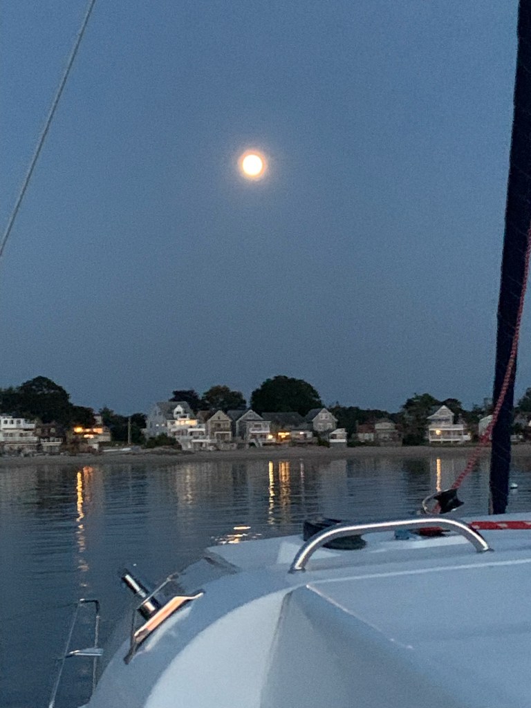 We then headed to New Haven, CT where we found a lovely spot to anchor and finally saw the sun! More rain was due so we headed on to Stamford, where were able to tie up to the Stamford Yacht Club dock thanks to family friends who called ahead. Stamford saw over 7 inches of rain and we were glad to be safely tied up. We also were able to have a couple of dinners with my big brother Peter, making the “lay days” a lot of fun!