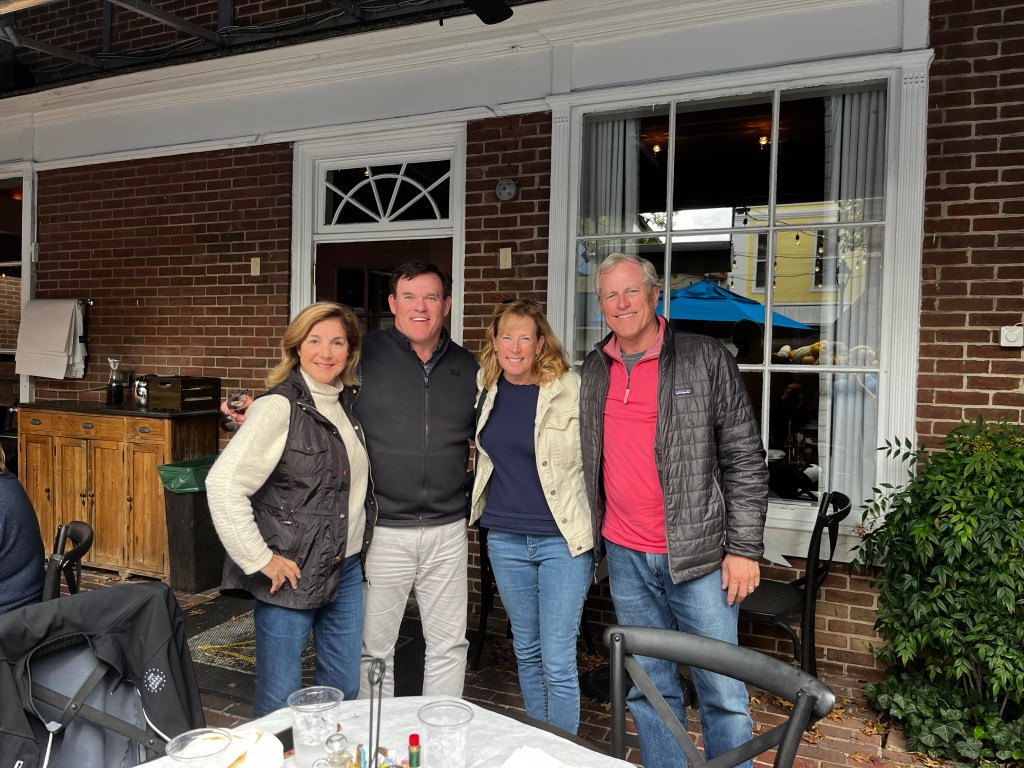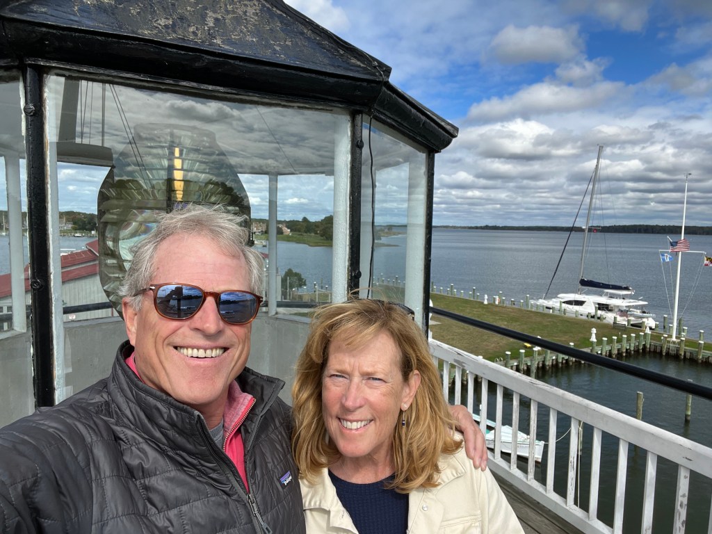 We attended the show Thursday and Friday which takes place right on the docks in downtown Annapolis. We find it much like Newburyport MA with lots of shops and restaurants as well as historical sites. Bill had realized that our batteries were aging out (needed replacement) so our #1 priority was to evaluate the options for changing out the batteries for similar AGMs or upgrading to lithium batteries which last a lot longer but of course are more expensive. We were connected to Hank George who owns Blue Heron lithium batteries through Bill and Kelly Kenney (they introduced us to a lot of people – they are so resourceful). Hank is also a Salty Dawg member and he was a big help in walking us through the options and has set us up to have the new batteries installed next week. We had a great lunch with the Kenney’s and later met up with Lucy and Doug Halsted who recently purchased a Leopard 45 and were there to shop and learn! Billy and Doug are like kids in a candy store talking to all the different suppliers at the show. Lucy and Doug also joined and attended the Salty Dawg dinner Thursday. We were excited to meet other “Dawgs” heading on the Caribbean Rally and enjoyed hearing the guest speaker, Gary Jobson tell stories which included so many references to Marblehead.