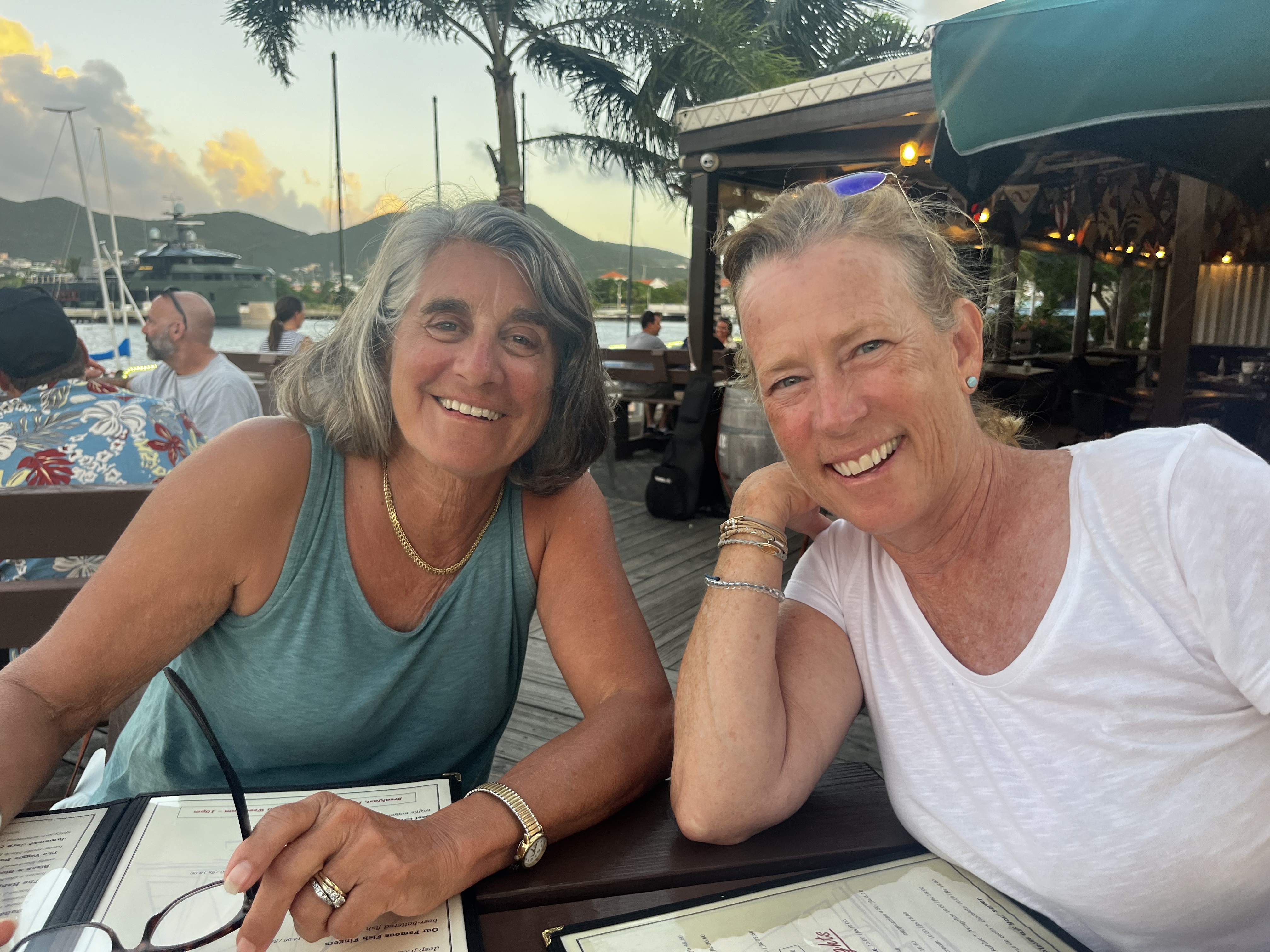 We headed back to Marigot Bay as Beth and Steve were leaving the next day and could catch an easy cab ride to the airport. For their last night, we made the requisite trip to the Dutch side and Simpson Bay by taxi and had drinks and dinner at the Simpson Bay Yacht Club which looks over the draw bridge where boats must pass to go in and out of Simpson Bay. In susequent days we found that going to Simpson Bay by dingy was much better! While it’s a bit of a trek (a couple of miles in the dingy) its all within the bay and almost every shop or restaurant has a dingy dock to tie to – so very easy to get all our errands done!