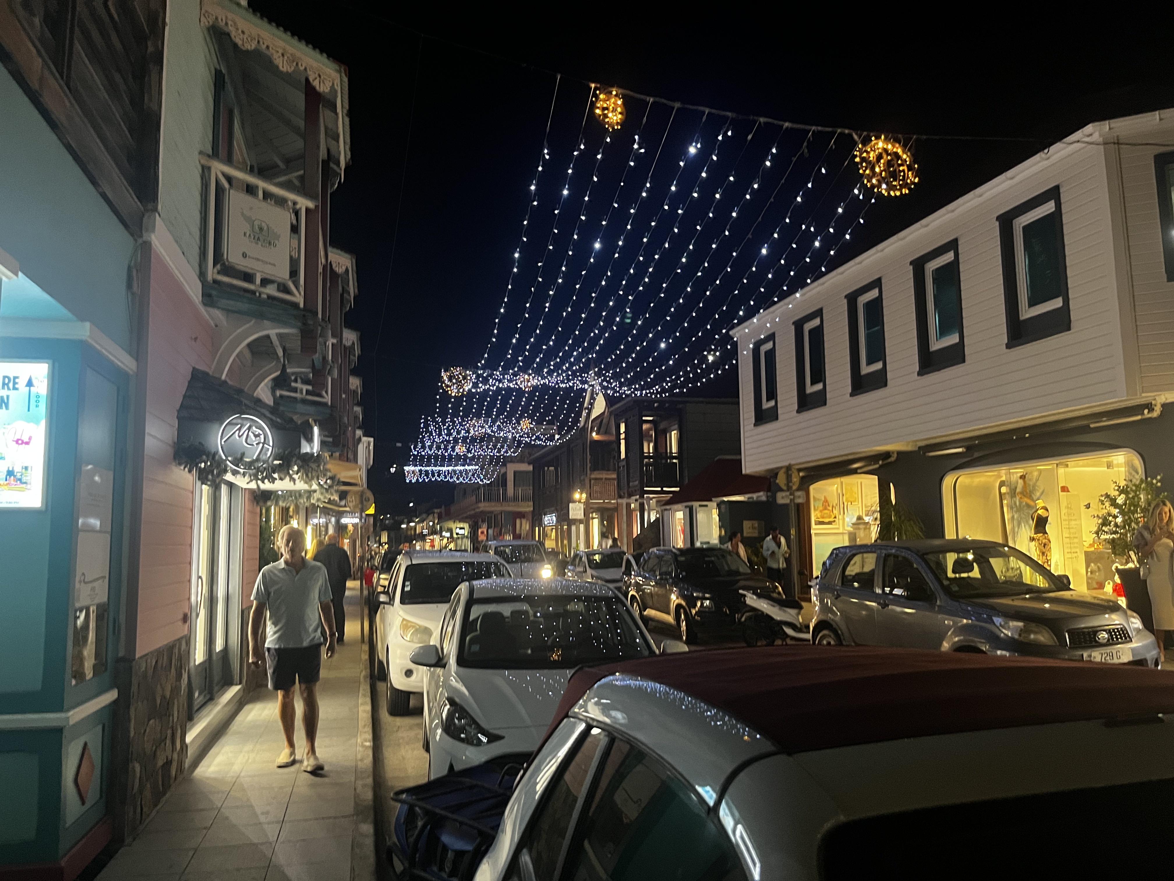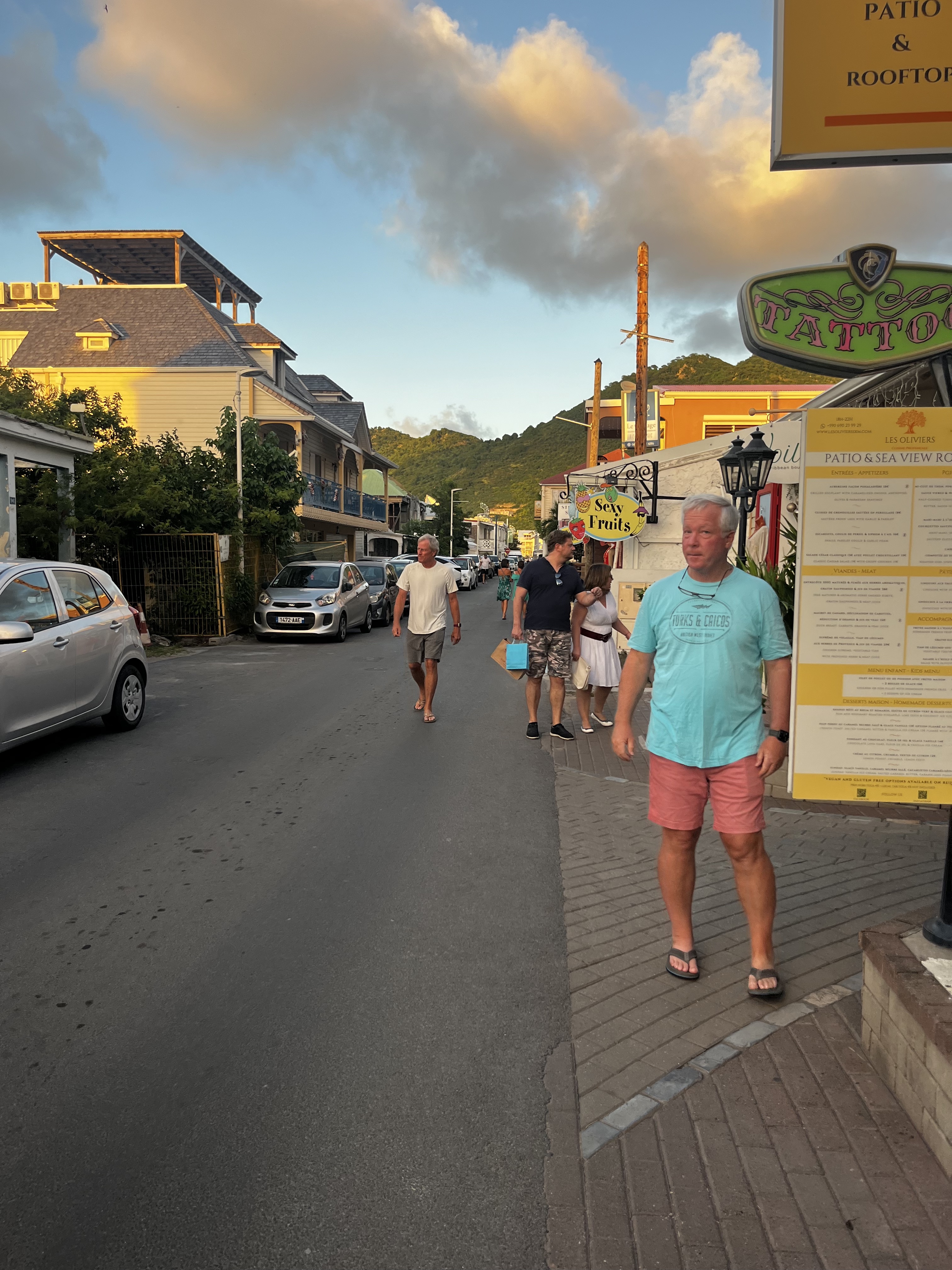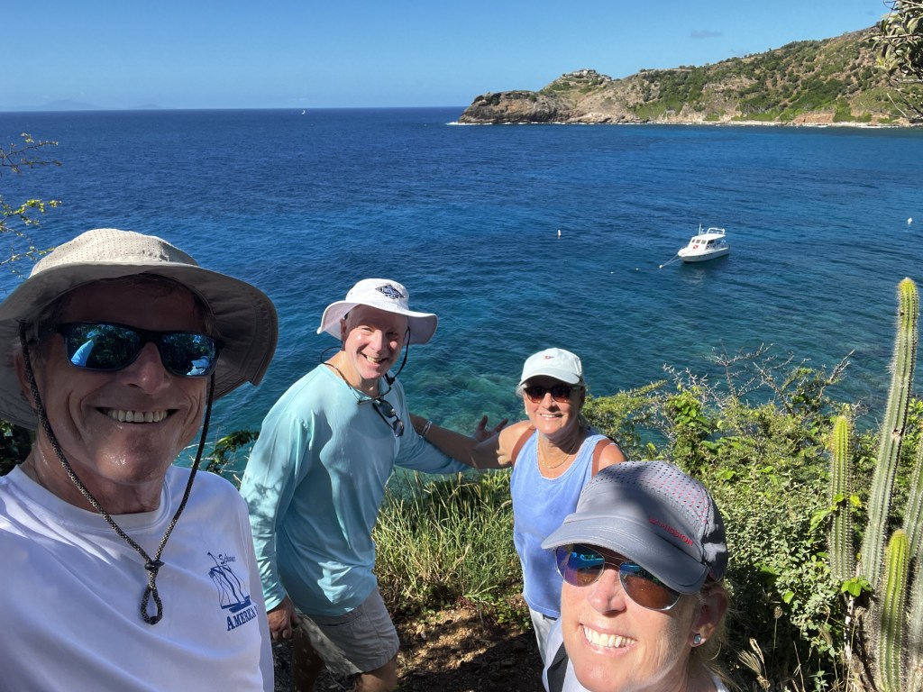 It was a quick dingy ride into Gustavia harbor which is full of lovely restaurants and shops. They were just getting decked out for the holidays with lights and decorations which does feel weird as we are used to it being much colder when the Christmas stuff comes out! We had a lovely sushi dinner at the BazBar which was right on the water – it had a big picture of Jimmy Buffet who apparently played there quite a bit. We all did a little shopping and hiking – it was a great few days.