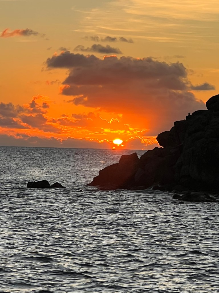 Since we need to get to the BVI for Christmas with the boys. Our next focus was getting from Marigot to the BVIs which is about 85 miles – that trip takes about 12 hours. With shorter days, we couldn’t leave at first light and arrive before night fall, so the best option was to leave at dusk, sail all night and arrive at daybreak into the BVI. We had a wonderful light weather window – 10-15 knot winds from the east so we left at 5 pm, watched the sunset and arrived to Virgin Gorda around 6:30 am on Friday morning, our first overnight just the two of us and all went well!