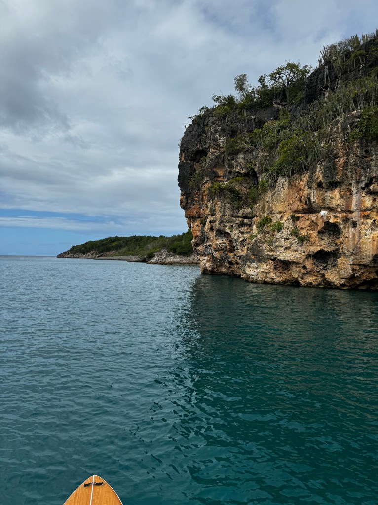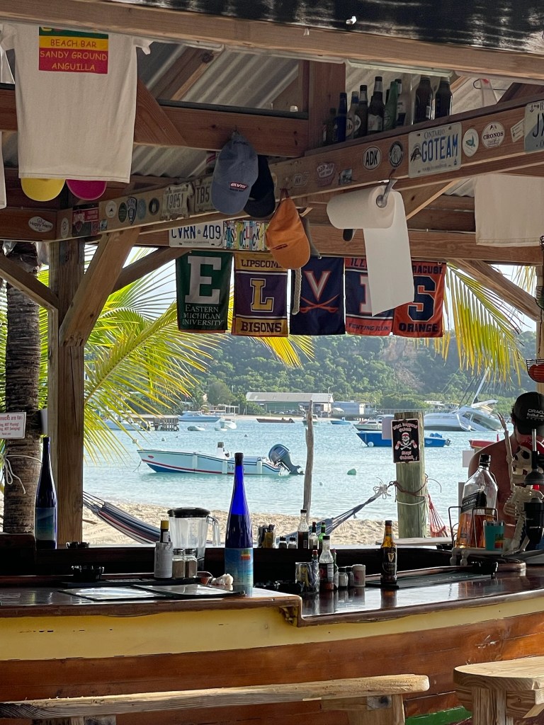 Scott and Kimberley Fillenworth arrived on February 9th and since the Hoyts weren’t due to arrive for a couple of days we decided to sail up to Anguilla (~5 nm north of St Maarten). We exited the Simpson Bay Bridge with another “c’mon man you’ve got to go faster” nudge from the bridge tender and sailed to Road Bay Anguilla where we checked into customs (in a tiny little building right on the beach) and enjoyed lunch at Elvis’ Beach Bar and an evening on the boat watching the locals race their sailboats. We spent the next day at Crocus Bay which was an amazing snorkel spot where we grabbed a mooring right next to the cliffs – couldn’t have been closer!