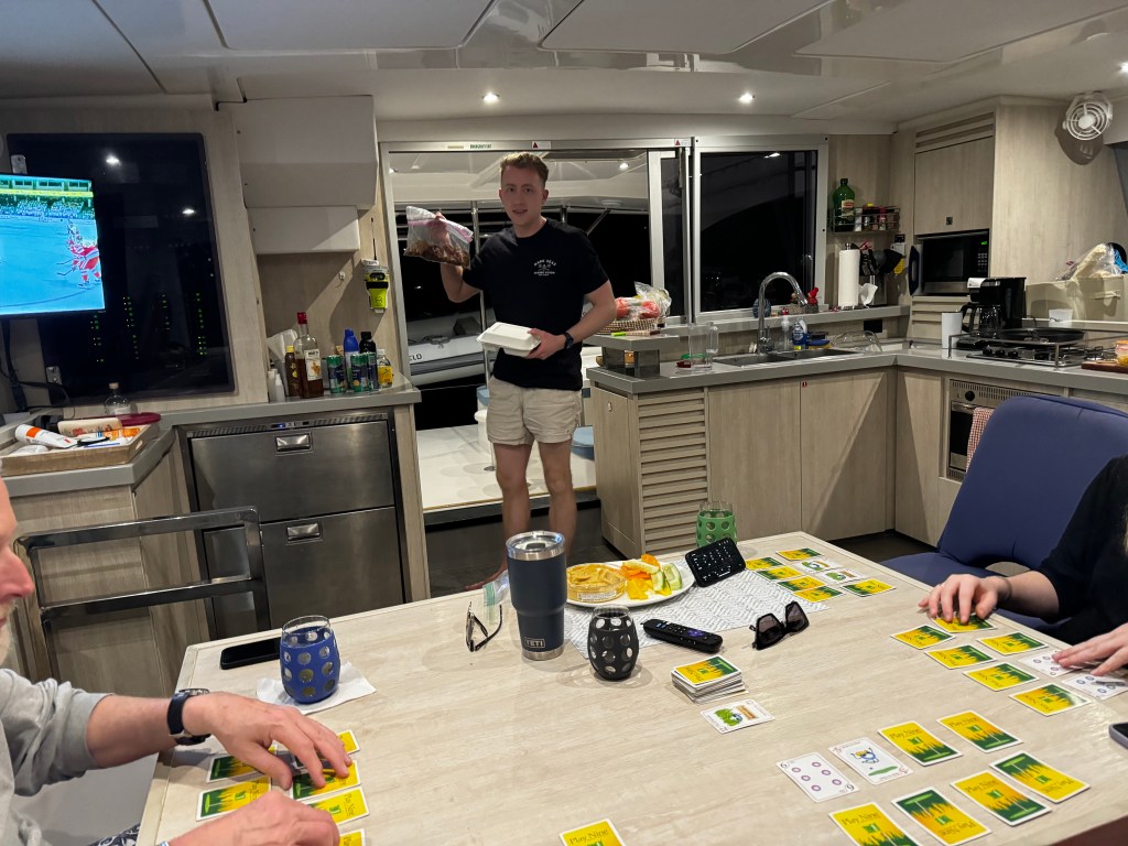When we first told our Salty Dawg Sailing Association friends (who are very experienced cruisers) that we were going to head west to the BVI for Christmas, they said we were crazy! It would guarantee having to beat back into the usually strong east winds to get back to Saint Martin and eventually back down to Antigua. But lucky us, the weather window was just right and the day after the kids had all headed home from the Christmas holidays we left Nanny Cay Tortola and had a nice overnight trip back Sint Maarten (the dutch side) with just a little headwind. We pulled in early in the morning and set anchor in Simpson Bay. We checked into customs where we literally stood next to a guy from Marblehead (Nick C.) who had just bought a Leopard 48 and had chatted with Billy on WhatsApp sharing ideas. It is indeed a small, small world!