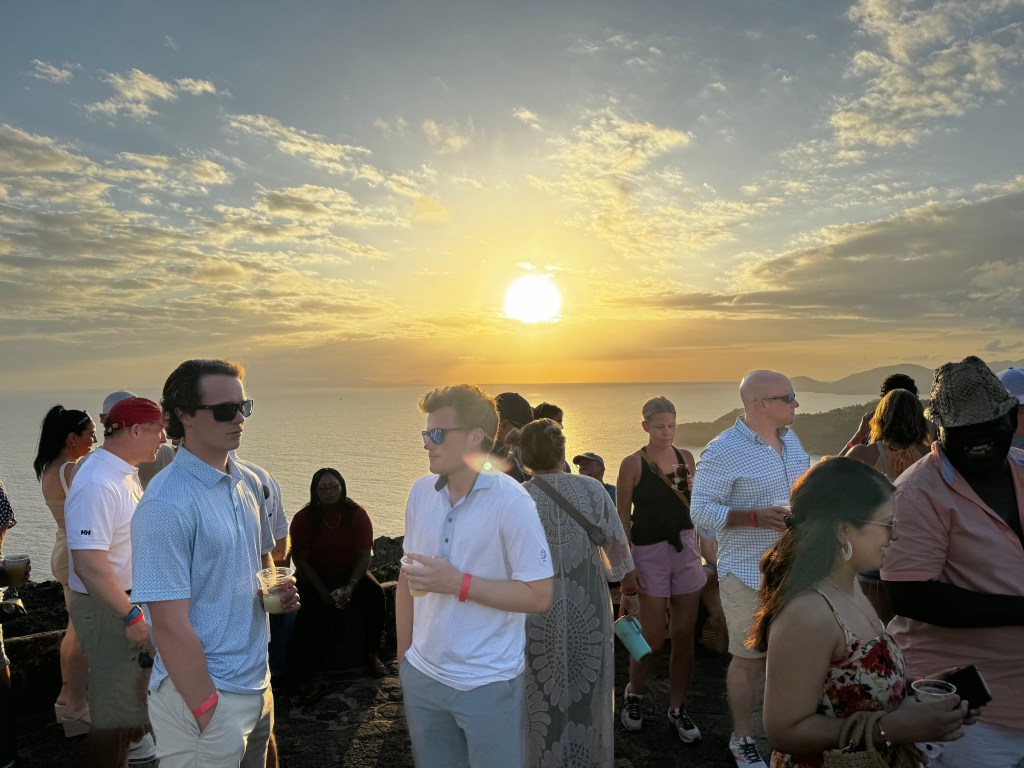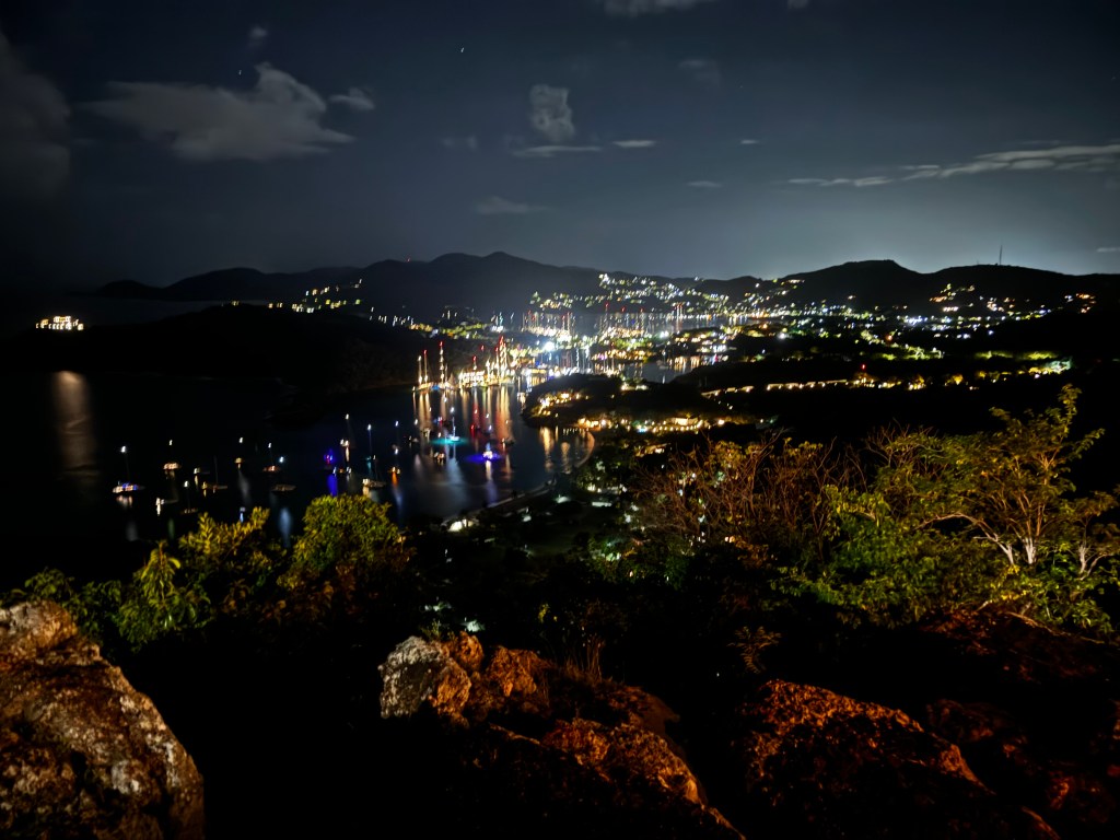 We visited Jolly Harbor, snorkeled the reef and and stayed at Carlisle Bay, then on to Green Island (which we all loved) which is on the east coast (the windy side) of Antigua but well protected by a reef so very protected and reefs and sights galore. The week flew by and next thing we knew we had to return to Falmouth. We had planned to finish our week with another evening at Shirley Heights (can you tell we like that place?. We found out that Will Hundahl (great friend of Ryan’s from Marblehead) had just arrived aboard “Velocity” for the Caribbean 600 race which was starting on Monday. So he and the boats captain James joined us up at Shirley Heights and we all had a great time. After the evening was done we returned to the docks and sat aboard Velocity a very lean (no galley, no bunks, no heads) racing sailboat – very cool to hear all their stories about serious yacht racing.