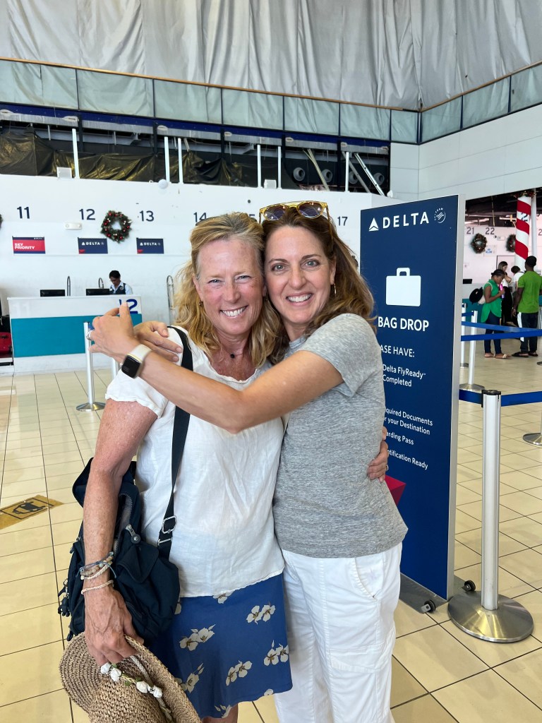 My college roommate (from our 214 Eddy St gang) was vacationing in Anguilla and while it wasn’t feasible for Billy and I to sail up to see her and her family, we decided to quickly meet at the airport as they awaited the flight home. I decided to try the local bus service to get to the airport – and it was was quite an adventure, but I made it and only cost $1.75. We got a chance to say a quick hello, our first in-person hug in many years. Next time we’ll hope to at least have dinner together!