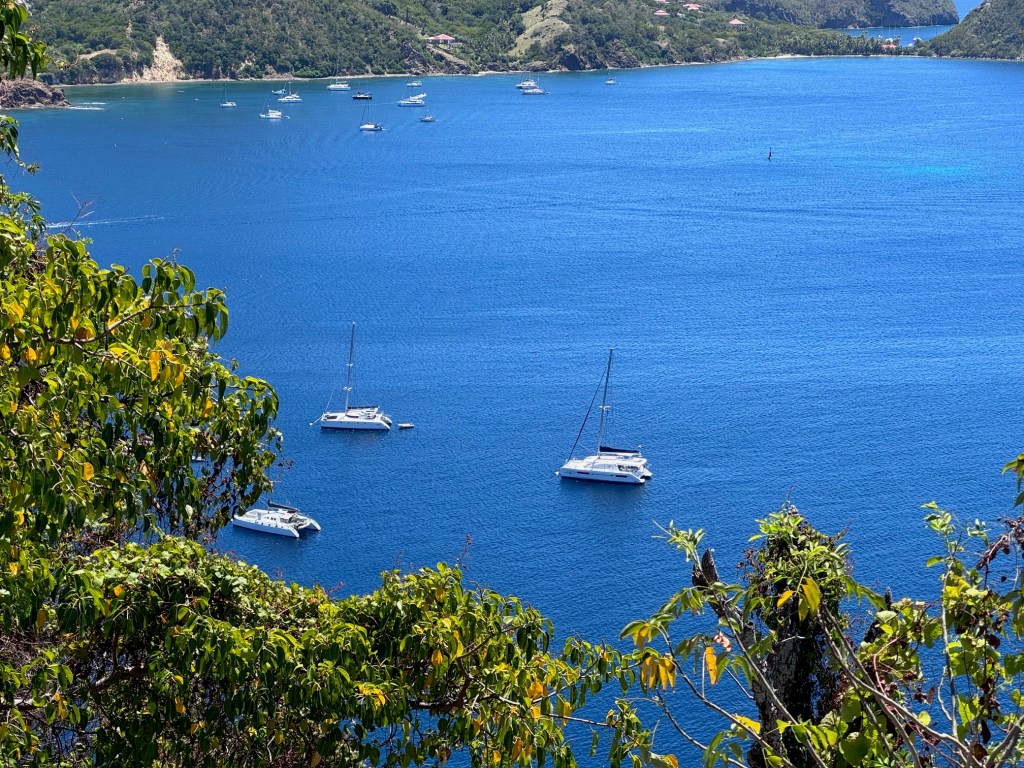 Next we sailed north past Dominica (no time to stop) and on to Isle de Saints the group of small islands south of Guadeloupe. It was a long day logging 75 nautical miles and the winds weren’t quite in our favor, but we made it to a mooring just before sunset. We rented e-bikes on the main island of Terre-de-Haut and had a blast with Bobby bombing up and down the incredibly steep hills and seeing all the sights and views. The island is known for having wonderful restaurants and Bobby picked one which turned out to be AMAZING. Au Bon Vivre is a French (of course) restaurant which specializes in offering the “Chefs surprise”. You can pick from 3 or 4 courses but have no idea what you’re getting until it’s served. The food was amazing and we ate every bite!