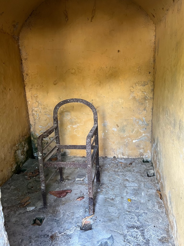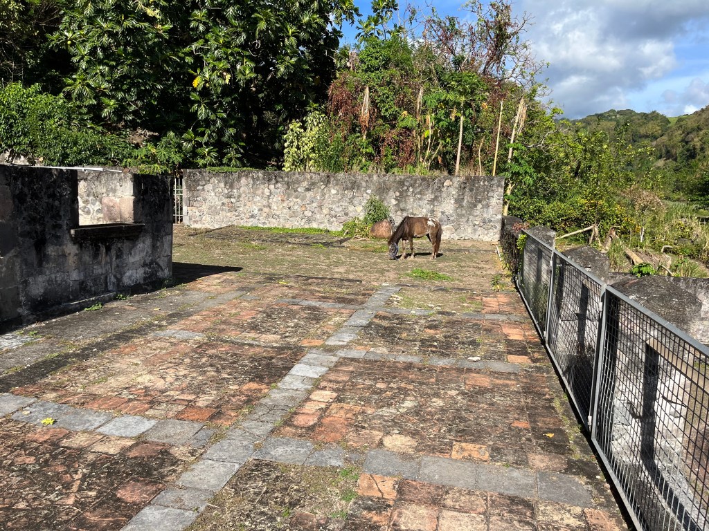 A couple of nights at Rodney Bay and then we sailed up to Saint-Anne Martinique and then further up the boast to Saint-Pierre where we explored beyond the Mt. Peele Museum which we had seen last time and walked up to the ruins of Maison Colonial de Sante (an old sanitarium). It was eerie not just because everyone had perished during the volcanic eruption, but because the small rooms and metal chairs where patients must have been restrained were still in place. On a more positive note, they had advanced the use of gentle hydro therapy and the hydro baths which were still visible. There was an old horse roaming the property who must be used to keep the grass low.