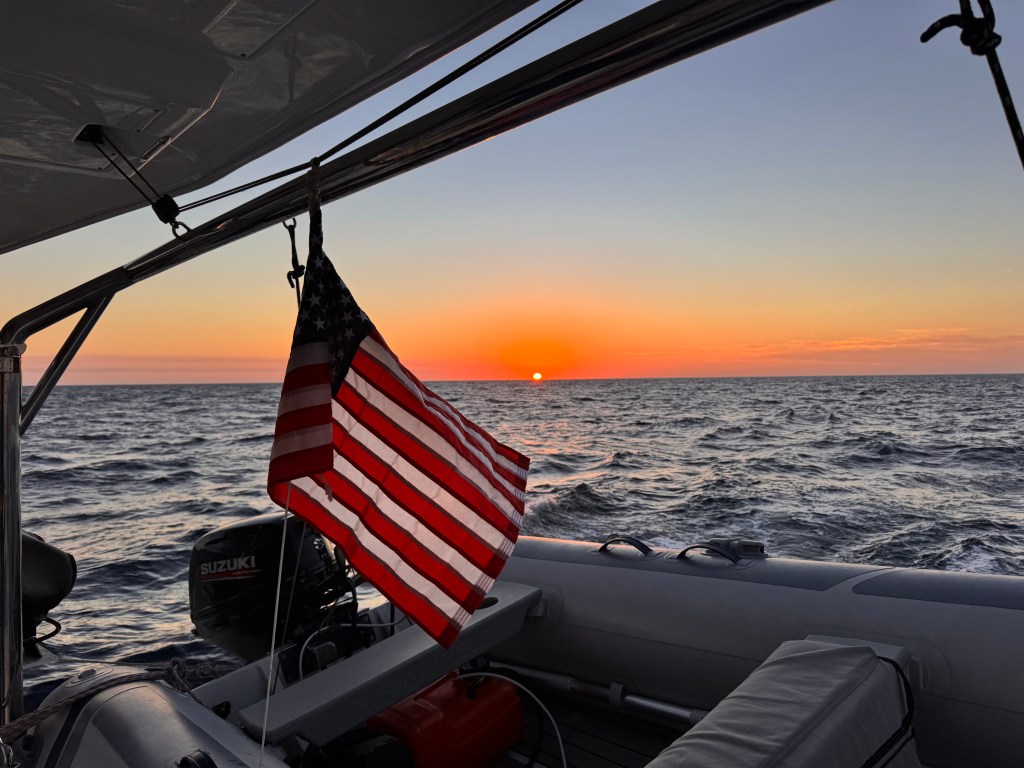 Our first waypoint was to enter the western edge of the Gulf Stream, which took us just over a day to reach. We certainly knew we were there as soon as we entered (~ 2 am on Friday Nov 1) as the ride got really bumpy. The Gulf Stream sends 5-6 knots of current heading north, plus we had a south wind. We were heading due east so it was quite rocky with the waves hitting us from the starboard side making the boat feel like a bouncy house – but we all got used to it and while it was bumpy – we were flying! We reached over 14 knots (speed over ground).