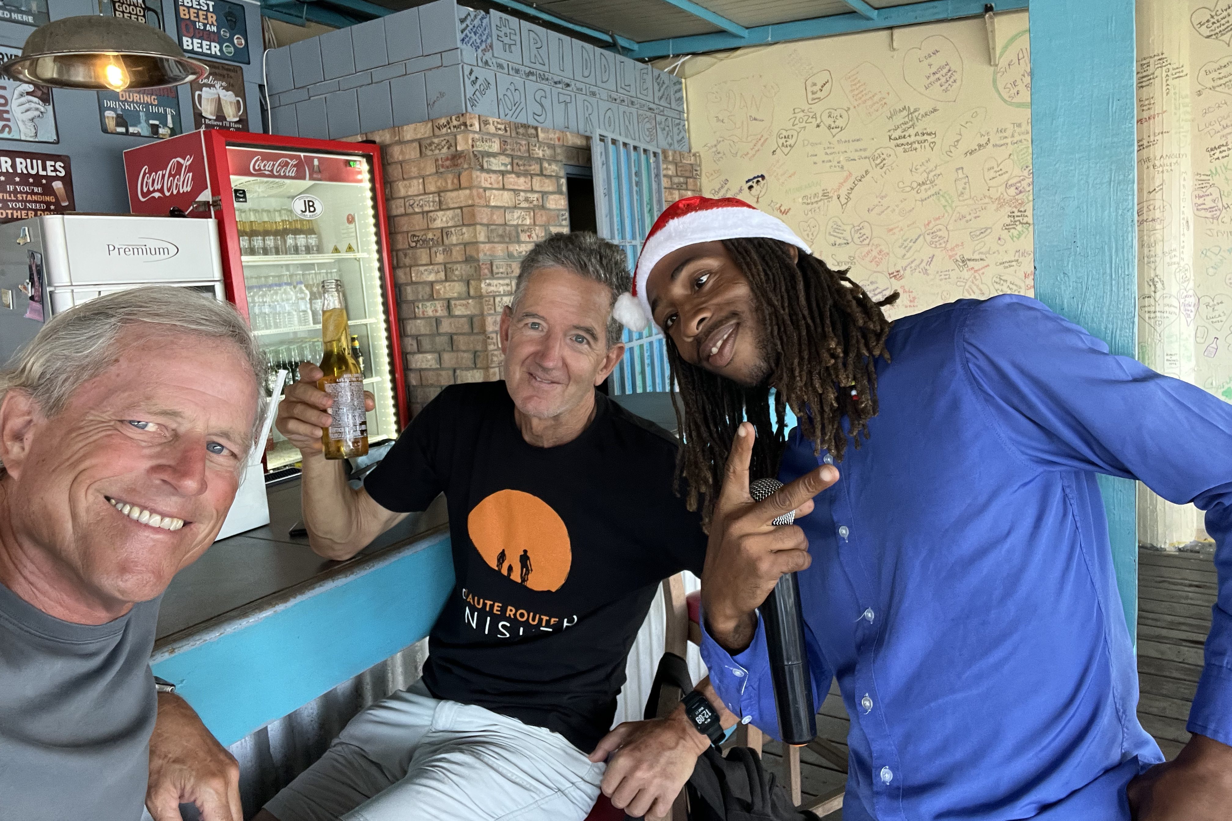 We took advantage of being in the big city to do some shopping and stop at the grocery store – which is the largest one on the island. Billy and Tim went to the dockside bar while Sandy and I perused the shops and they met a really cool local, Maryo Leo, at the harbor bar who is a local entertainer and inspirational speaker. He completely embodied the positive and happy attitude of Antigua.