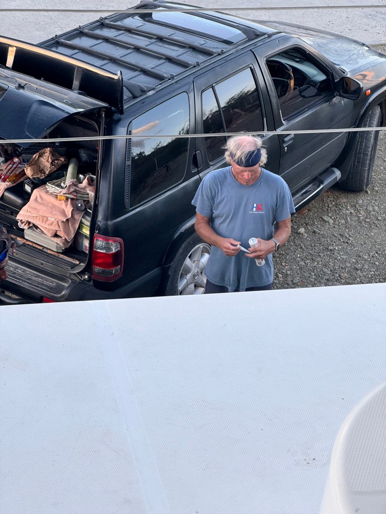 Friday came and we didn’t realize it, but they would be closing for the weekend and Monday was a local holiday. If we didn’t get back in the water that day, we’d be stuck for 3 more days. They had some trouble getting the rudders set right – so while Danny the boat lift operator was keen to go home for the weekend, Speedy convinced him to stay late and an hour after closing they dropped us back into the water! Speedy re-attached the rudders to the steering system, sat and had a quick beer with us to celebrate and we were back in business. So far the rudders seem fine – and the fix is holding – Billy is confident they did it right this time.