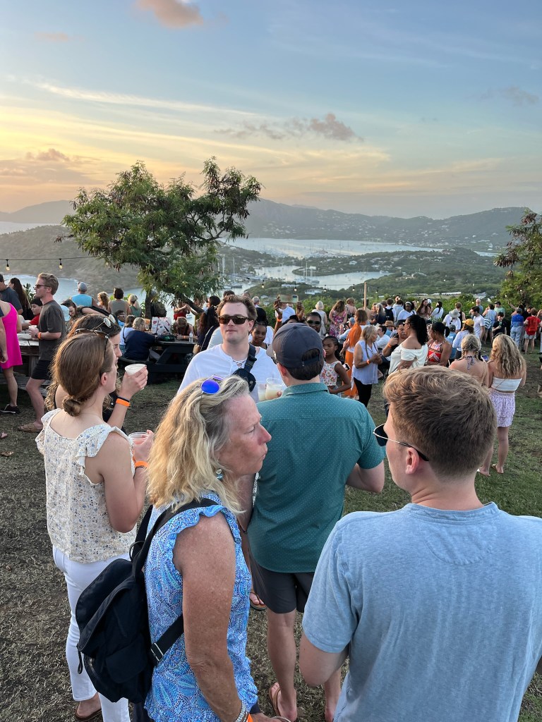 The rest of the kids arrived the next day except Livi who got stuck with the winter storm that hit the Northeast, but she made it in just one day later – so not so bad. One or our favorites things to do on Antigua is the Sunday night BBQ up at Shirley Heights. We took our gang up while the Fillies waited for Livi to arrive from the airport. We always meet the most interesting people at the BBQ and this was no exception and of course dancing to the reggae music was a blast.