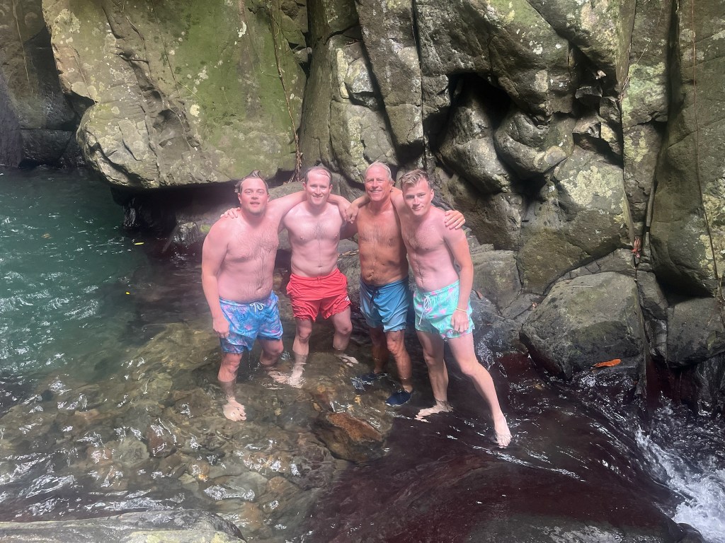 We headed back up to mainland Guadeloupe and stopped at Pigeon island and the Jacques Cousteau national park for what has been the best snorkel of the season so far. It was so clear and there were so many fish and of course Billy forgot to bring his go pro (so, no photos). After the stop, we continued on to Deshaise where we had booked a tour for the next morning. Phillipe of Pelican Tours was our guide and he was great. The tour highlight was a hike up to the waterfall where the kids took some pretty dramatic jumps and flips off the rocks (which scared the heck out of me).