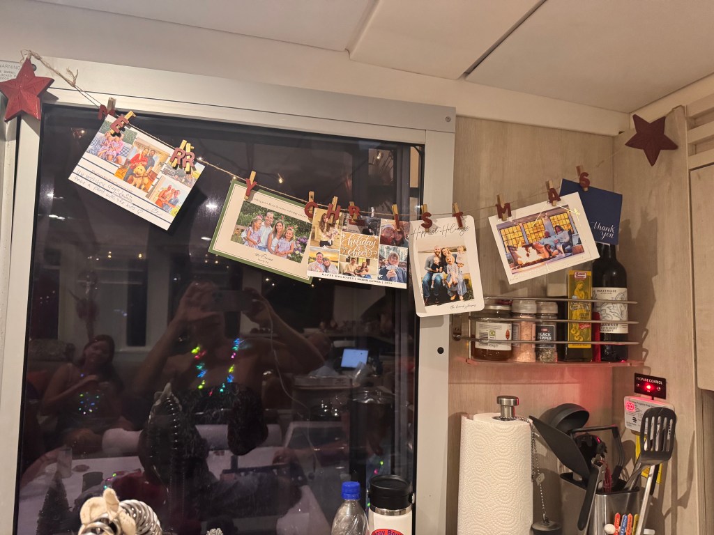 We spent Christmas at Jolly Harbour (doesn’t that make sense?). With such a big crowd we had Christmas Eve dinner on board Carried Away – serving a Ho-Jo tradition of Lobster Newburg which required a lot of coaching from my big brother Peter (thank you Starlink!), but eventually we served it up and all had lovely evening.