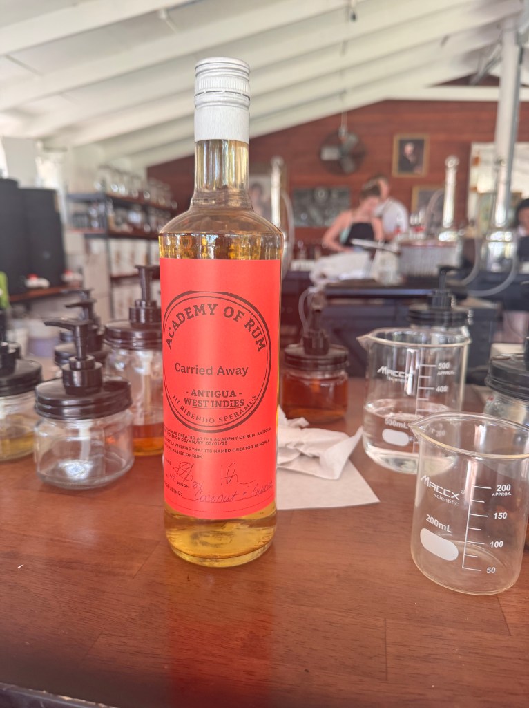 We sailed back up to Antigua to get Willy’s favorite Roti from Sue (a local specialty) before he had to head to the airport. Trevor booked us to go to Rum University on Galleon Beach for their last day and we had a blast. We all graduated and came away with our own personalized bottles of Rum!