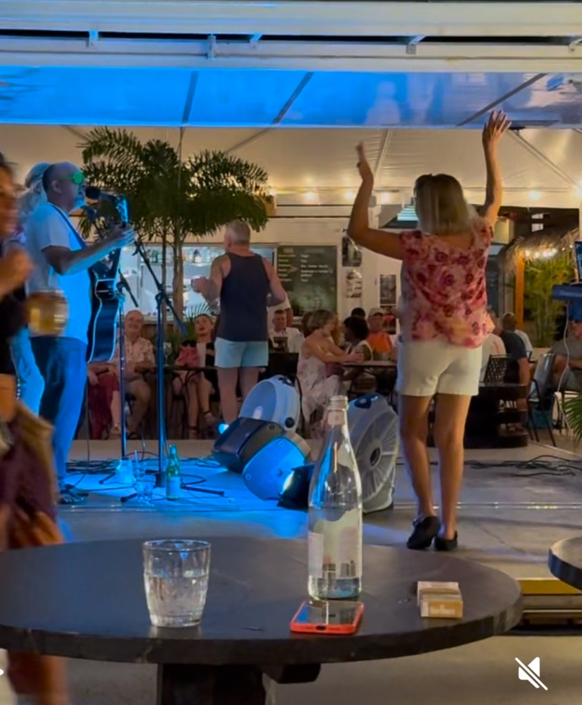 Willy arrived first with Kimberly and Scott and we went to Marinaside in Falmouth Harbor which is an open area drinking and dining area where we found Jeff Ford from Marblehead playing with his band. He spends the winter in Antigua and our friend Jack had alerted us that he would be there. We had a blast catching up with him and the music was great!