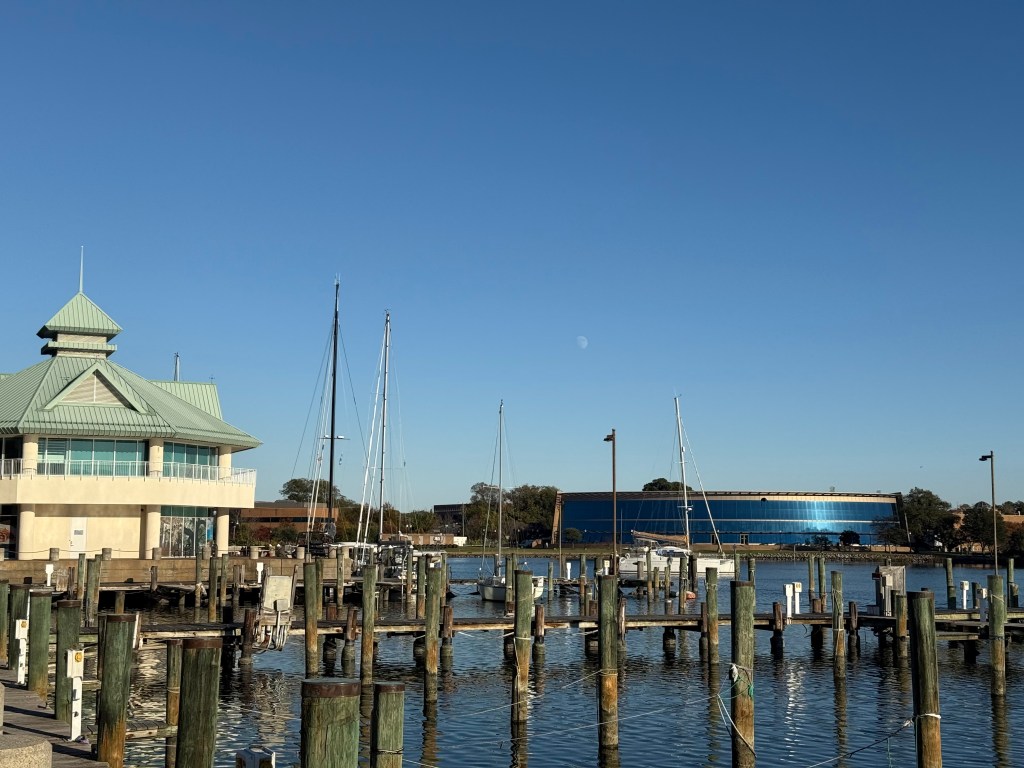 We had planned to start out around 8 am Tuesday, but when we got up at 6:00 am many boats had already left the docks. We had total FOMO. So we quickly dropped the dock lines and headed out for Hampton Roads and the exit through the Chesapeake to the Atlantic.