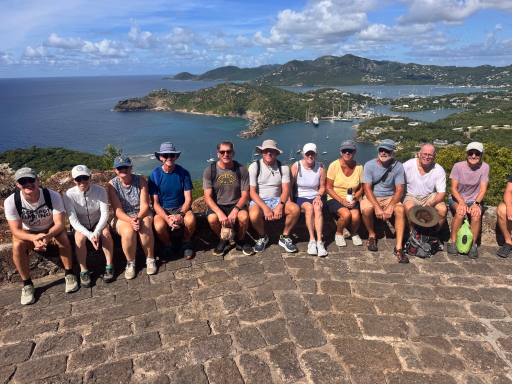 The next morning we moved over into Nelson’s Dockyard in English Harbor to join the arrival celebrations. We were moored stern-to along with SV Persephone (The Bloxhams from Marblehead) and SV Critical Path (our Salty friends the Barrs who are also related to Karl) who had arrived ahead of us and we jumped right into the welcome activities which included hikes, dinners, local service provider receptions, rum tastings and more.