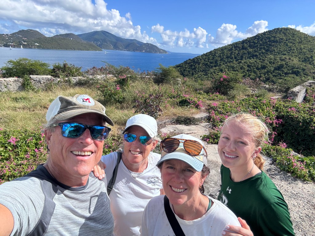 We returned to St. Thomas and hopped over to St. John to meet Kim and Katie Hutchinson. Katie had just a few days left of her winter break and they came to get take in some sunshine and relax. Notably this was the first time that Billy was outnumbered 3-1! We called ourselves JUGSOTB (Just Us Girls Other Than Billy) and it was so much fun! We enjoyed dinner at the Lovango resort with the Vogels and spent time in Maho Bay including a long hike out to the Annaberg Ruins. Katie was getting ready for her lacrosse season so we did a lot of hiking (she ran, we walked). Then we hopped over to the BVI for all the important stops including Soggy Dollar, Foxys and Willie Ts. It was a short trip, but we had a blast and they certainly had some fun in the sun!