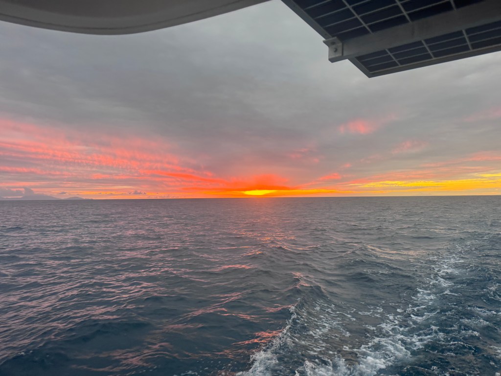 Finally our weather router said, “while not ideal – it’s the least bad window you’ll see for a while”. So…off we went and honestly it was a fine passage. We left at noon on Wednesday, motored the whole way, had a bright moon at night and arrived to Jolly Harbor Antigua just as the sun set on Thursday.