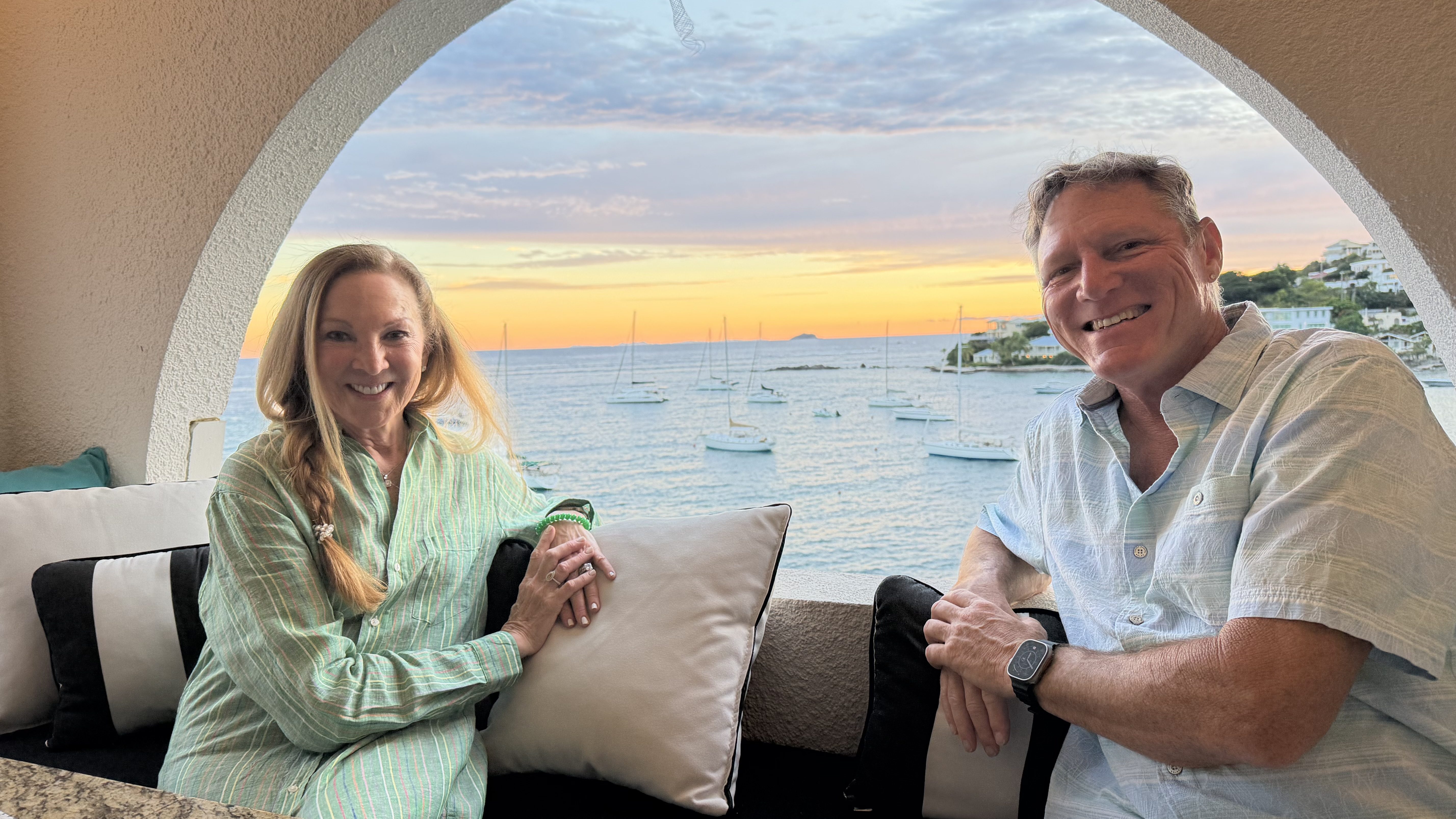 After the kids departed in late December, we needed to get in position to leave the boat so we could head home for Mather and Abby’s wedding on January 3rd in NY. That meant we had to get the boat in place on Old Years Night (that’s what they call New Year’s Eve in the islands) and fly out New Years Day. How lucky are we to have the Spenceley’s living on St. Thomas?! They set us up with a mooring at the St. Thomas Yacht Club. What was amazing is that they look right down on the harbor from their balcony so kept an eye on her all week. We tied the boat up and headed up to join Elaine and Richard for cocktails and a yummy early Old Years Night supper. It was gorgeous!